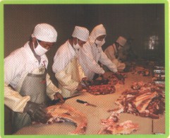 公司直屬優(yōu)質(zhì)肉牛育肥場,位于平度市田莊鎮(zhèn)宮東村南1公里處,始建于2009年3月,設計存欄3000頭,現(xiàn)存欄1000余頭,占地100多畝,現(xiàn)有建筑面,18600平方米。公司擁有一批具有養(yǎng)牛經(jīng)驗的管理、技術(shù)、飼養(yǎng)人員。聘請了全國養(yǎng)牛方面的知名專家作為技術(shù)顧問。養(yǎng)牛場現(xiàn)有職工23人,具有初、中級以上技術(shù)等級和從事養(yǎng)牛5年以上的工人占70%以上,有管理和技術(shù)人員5人,其中畜牧獸醫(yī)專業(yè)中、高級以上職稱3人。本公司通過食品安全認證、質(zhì)量體系、無公害認證,是國家地理標志保護產(chǎn)品。是肉牛定點屠宰單位。被評為“島城市民最喜愛的農(nóng)產(chǎn)品品牌”、第一批“平度好食材”。本公司肉牛養(yǎng)殖場喂牛所用飼料全部采用自己配制的飼料,主要使用大豆、玉米、麩皮,大豆經(jīng)炒料機炒熟后再分碎飼喂,無任何添加劑。公司有火鍋料理店6處,安排從業(yè)人員80多人。公司擁有年屠宰加工1萬頭肉牛的屠宰生產(chǎn)線,嚴格執(zhí)行國家GB/T17238-2008鮮凍牛肉分割標準,并按伊斯蘭清真屠宰要求進行屠宰分割以及排酸嫩化處理。我公司生產(chǎn)的牛柳、西冷、肉眼、上腦、S腹肉等產(chǎn)品主要銷往上海,北京,南京,濟南,青島,煙臺等大中城市的四、五星級酒店,用作西餐、韓餐、日餐、中餐等深受用戶青睞。